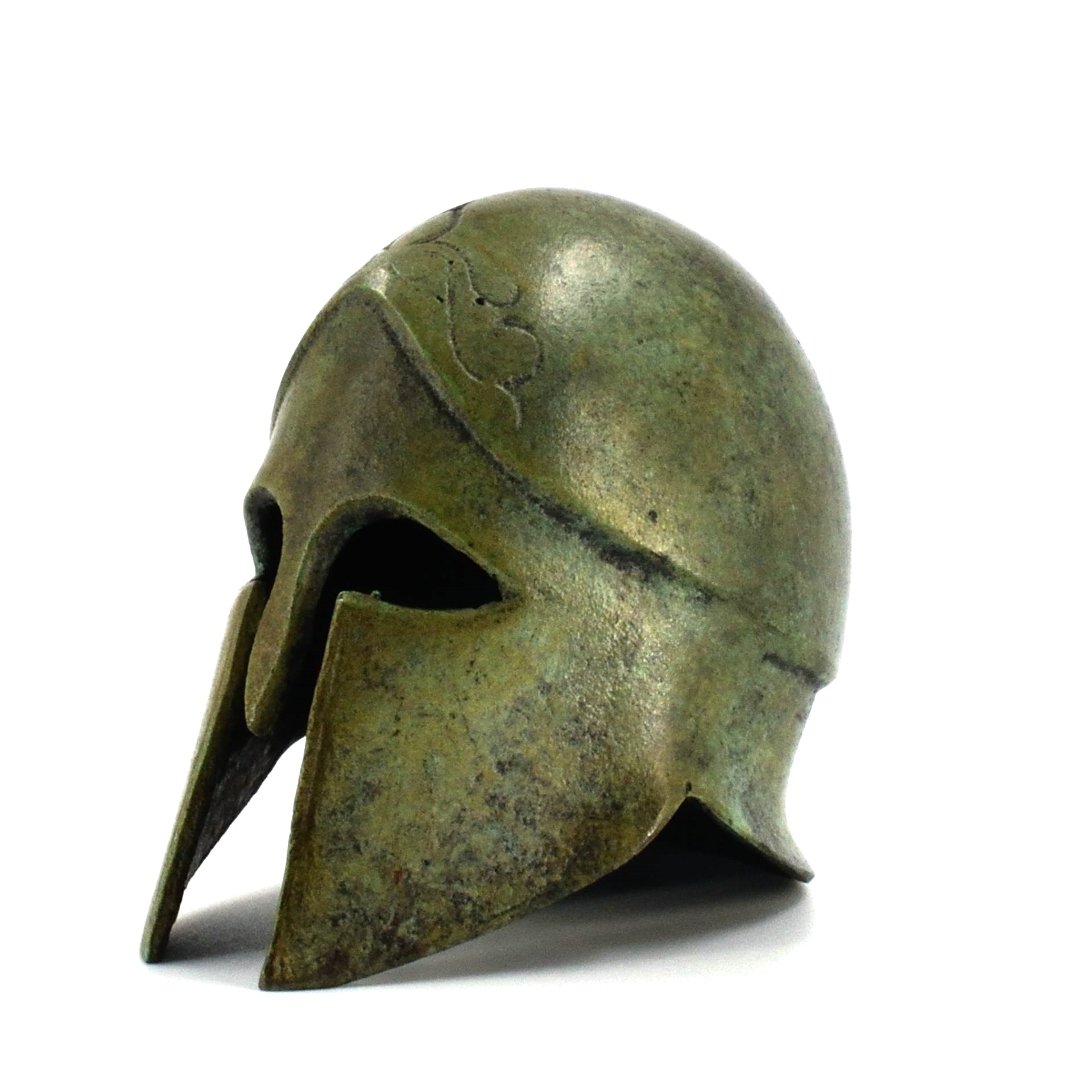 The iconic helmet of the hoplite soldiers of ancient Greece