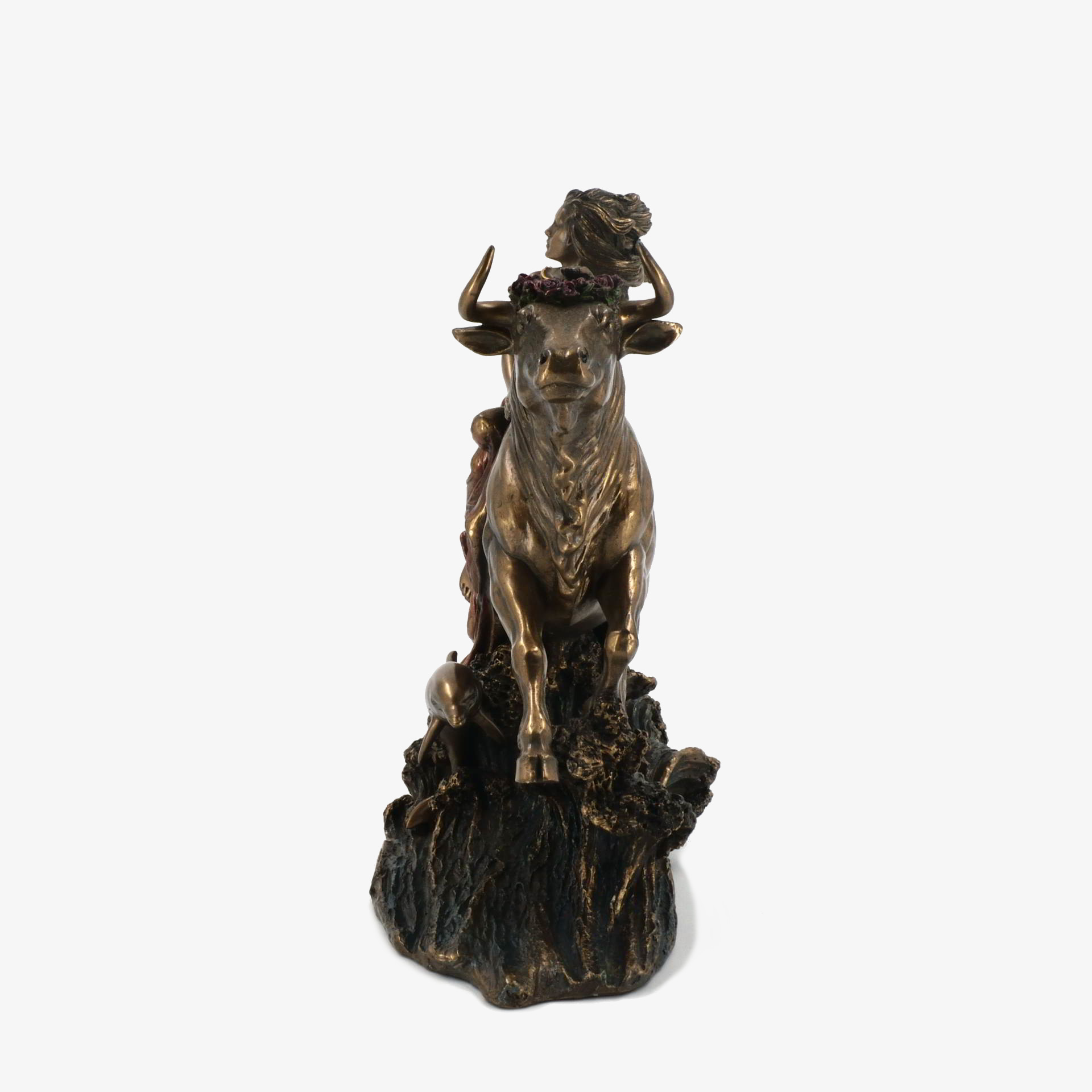 In Greek mythology, the abduction of Europa marks a pivotal moment of transformation and origin. Zeus’s act leads Europa away from her homeland to Crete, where she becomes queen and the mother of a royal lineage. In Crete, Europa becomes queen and the mother of three sons: Minos, Rhadamanthus, and Sarpedon, figures who play significant roles in myth and law. Minos becomes a legendary king of Crete, while Rhadamanthus is later known as a judge of the underworld, linking Europa’s lineage to both earthly rule and cosmic order. Her story gives rise to the name of the European continent, linking personal myth to collective identity. The sculpture captures this narrative at its most symbolic instant, where innocence, power, and destiny intersect. Europa is presented not simply as a passive figure, but as a central presence within a story of divine intervention and cultural beginnings.