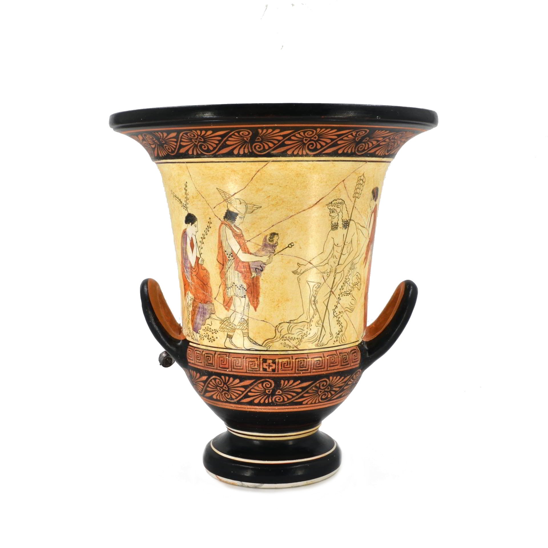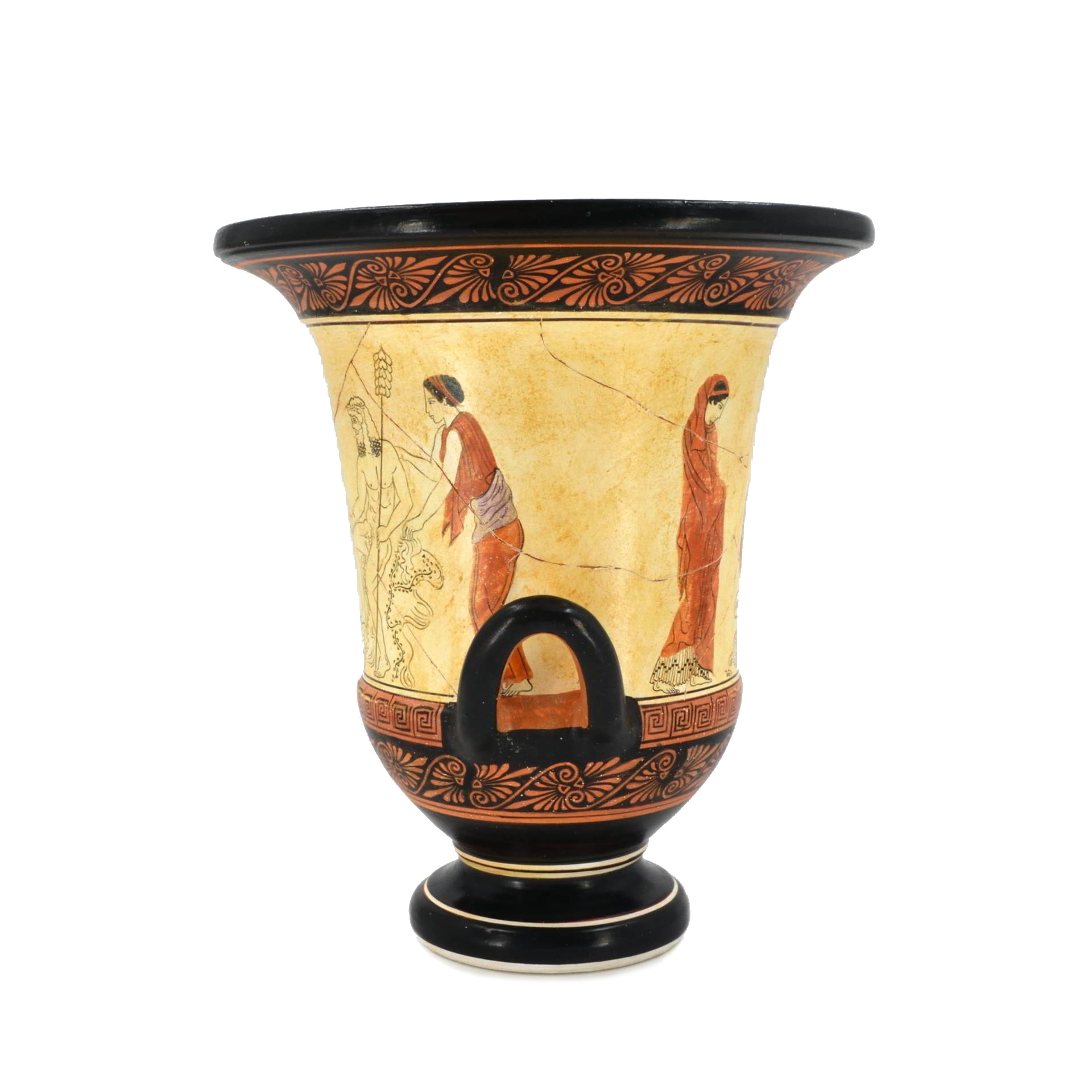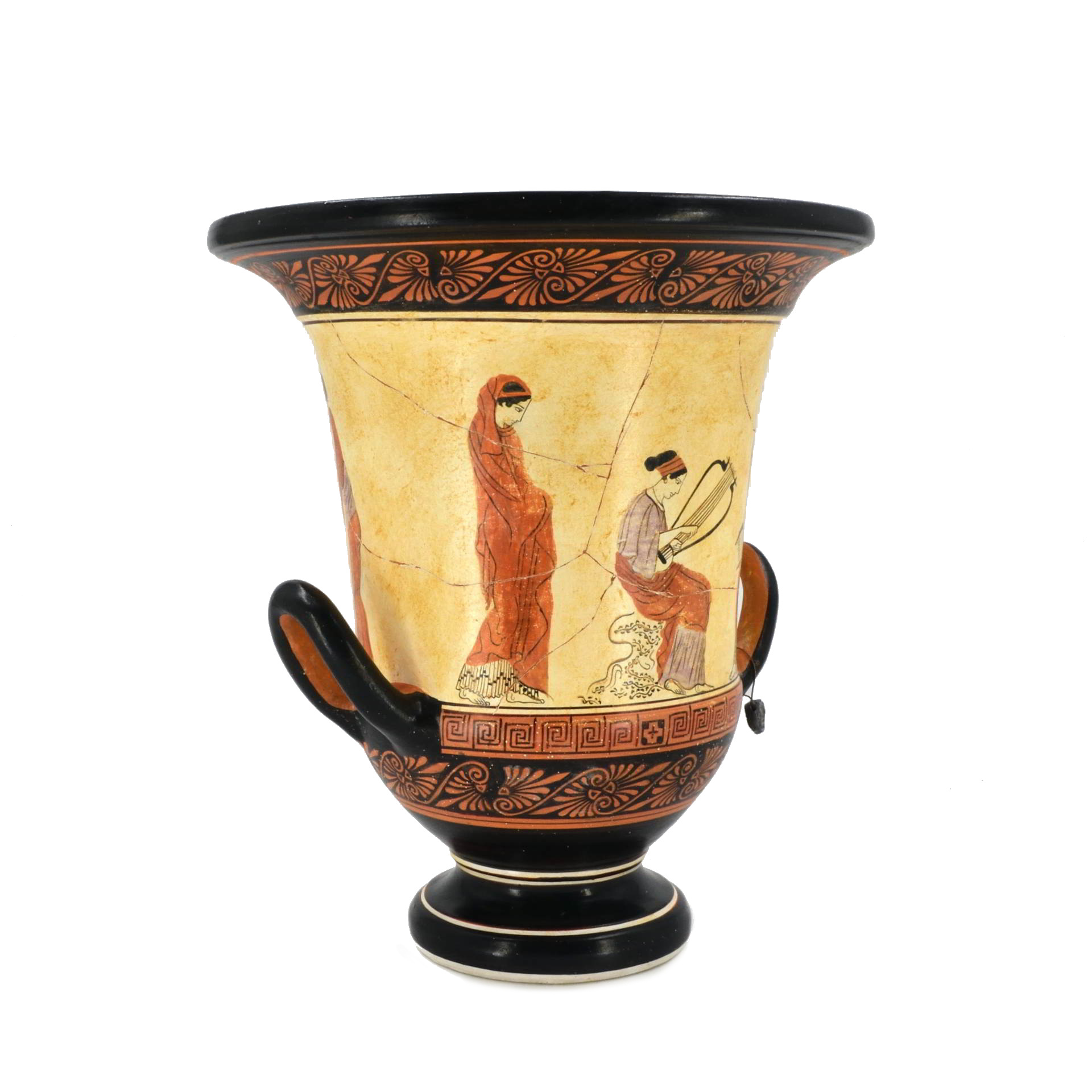 Replica of an Attic red-figure volute krater (c. 450–430 BCE) depicting a lyre performance scene, inspired by an original in the Vatican Museums.