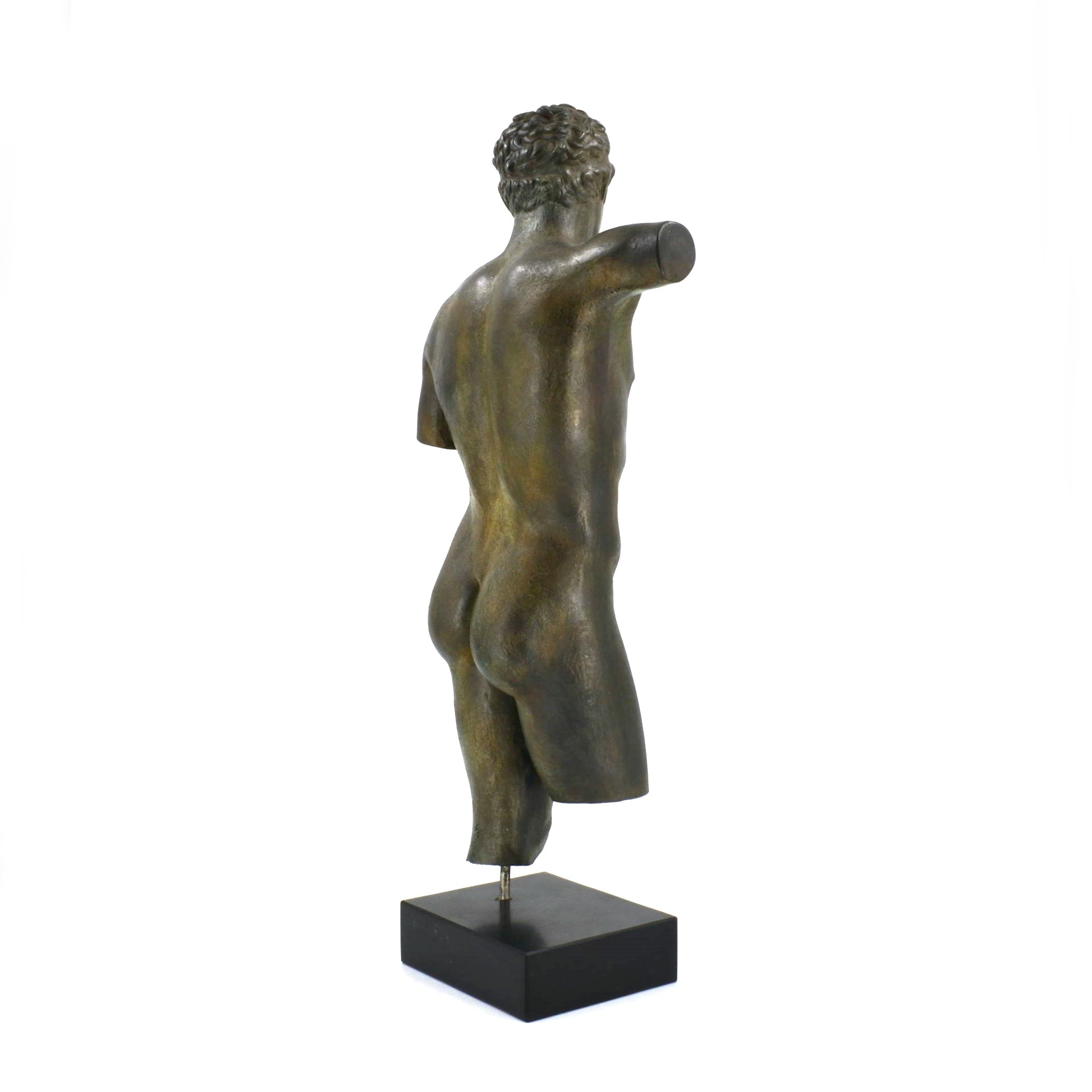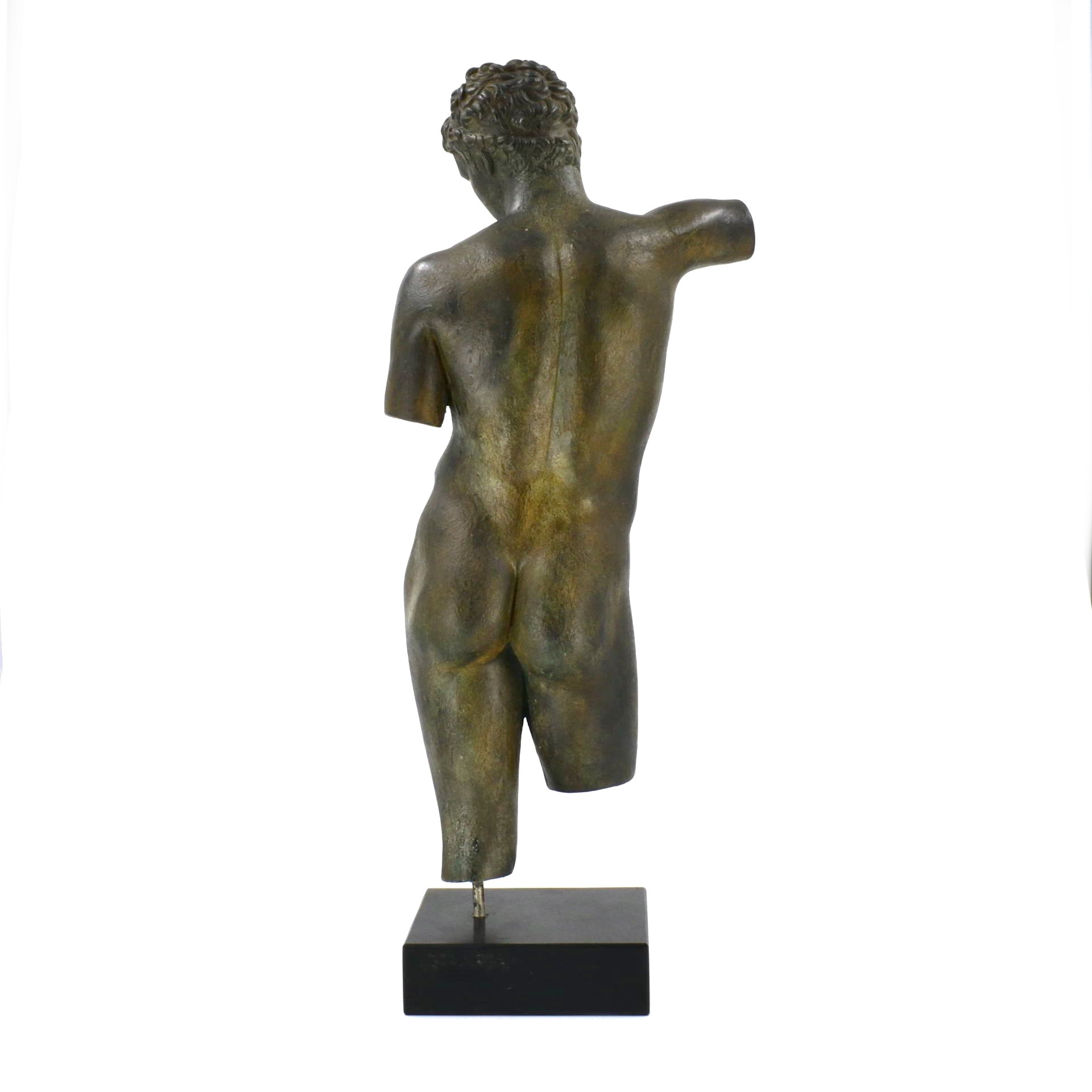 Although the exact subject remains debated—possibly the mythological hero Perseus, Paris holding the Apple of Discord, or a victorious athlete—the figure exemplifies the refined anatomy, balance, and expressive subtlety characteristic of Late Classical Greek sculpture. This reproduction captures the timeless elegance and historical significance of one of antiquity’s most remarkable bronze statues.
