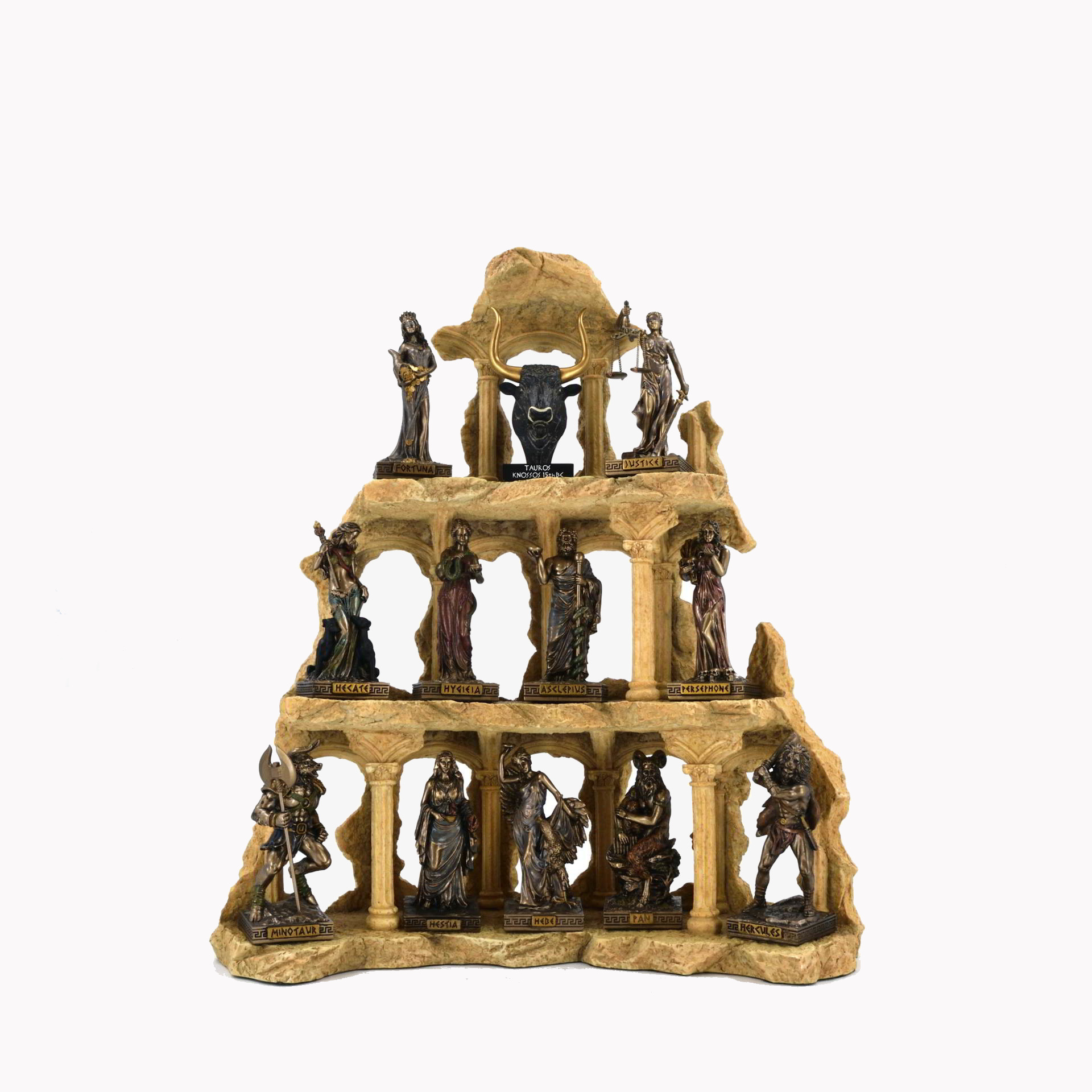 This exquisite collection of Greek mythology figures is displayed on a boulder-style base, representing the Olympian gods who ruled over ancient Greece. Each deity played a crucial role in mythology and was worshiped in different regions throughout history.