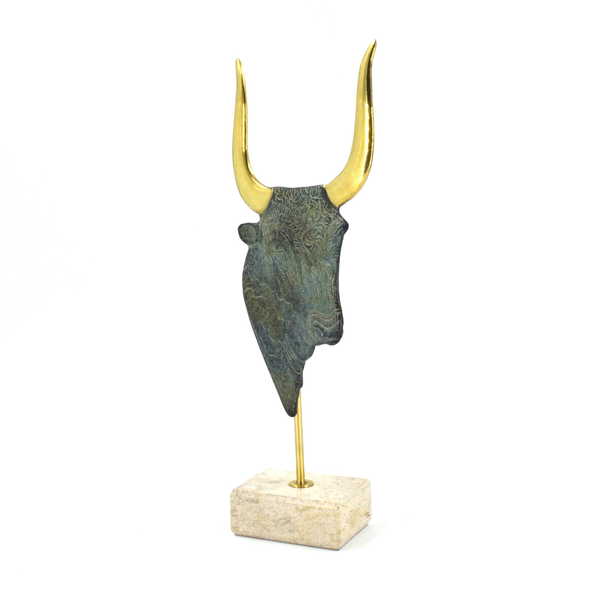 This replica captures the stylized features characteristic of Minoan artistic expression—curved horns, detailed texture, and symbolic presence—bringing to life one of the most enduring mythological figures of the ancient Aegean.