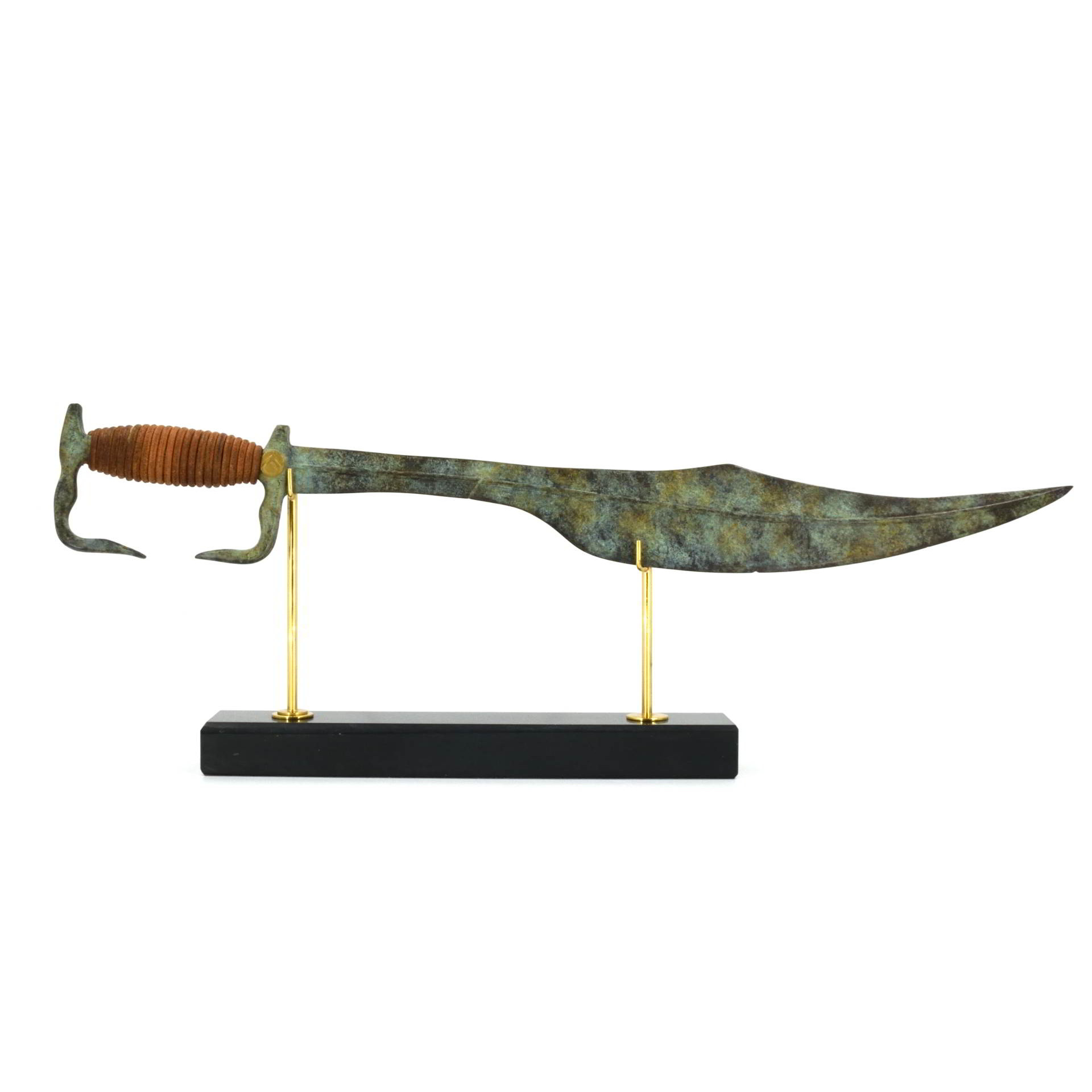 This replica represents the xiphos, the short double-edged sword carried by King Leonidas I of Sparta and his elite warriors. Leonidas is immortalized for his stand against the Persian army at the Battle of Thermopylae in 480 BCE, a defining moment of the Greco-Persian Wars. A prominent modern statue honoring him stands at the Leonidas Monument in Thermopylae, commemorating the courage of the 300 Spartans.